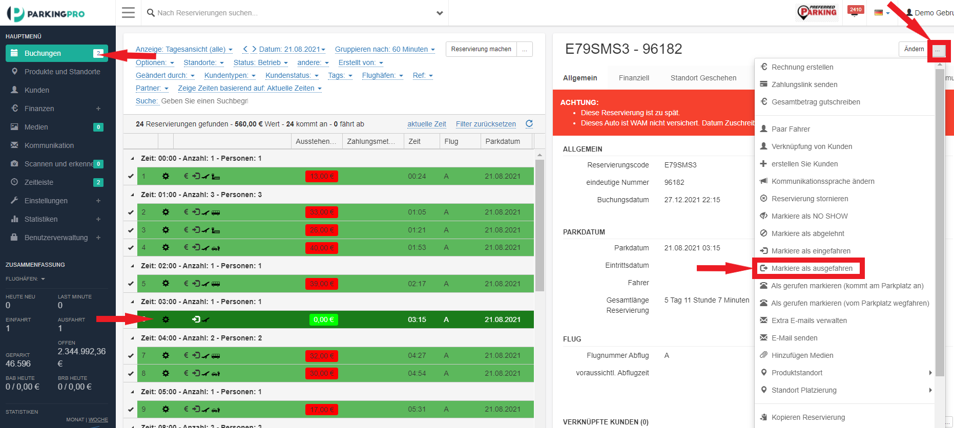 Schritt 2. Klicke auf die entsprechende Reservierung und dann auf "..." oben rechts.