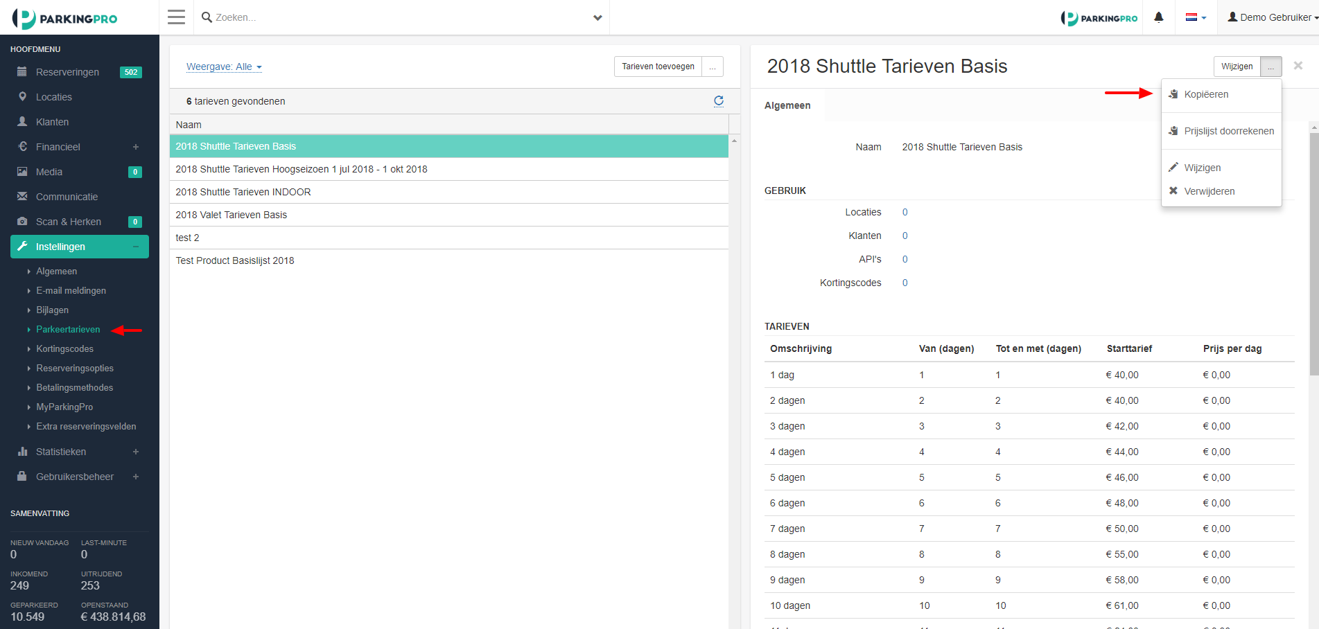 - Via het ... menu zoals in het screenshot hierboven vind u vervolgens het menu item Prijslijst kopiëren.